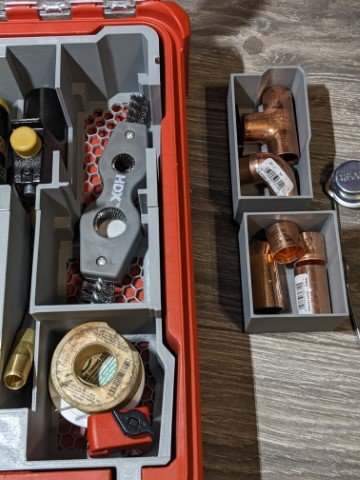 • Finally, install the 2 trays into their respective cutouts and you can use those to store various fittings or anything else small to fit in there.