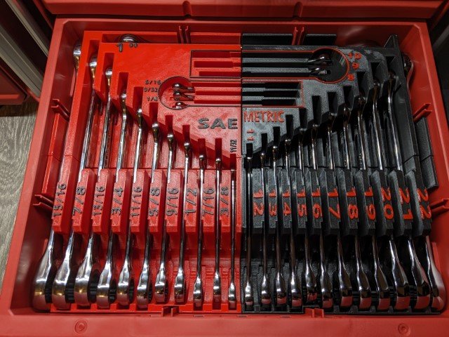 Start loading your wrenches into the appropriate slots. They can go in either up or down facing direction. The 1″ wrench (largest) goes at the very top.